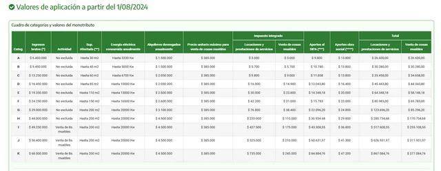 Monotributo: AFIP publicó las nuevas escalas vigentes a partir de agosto
